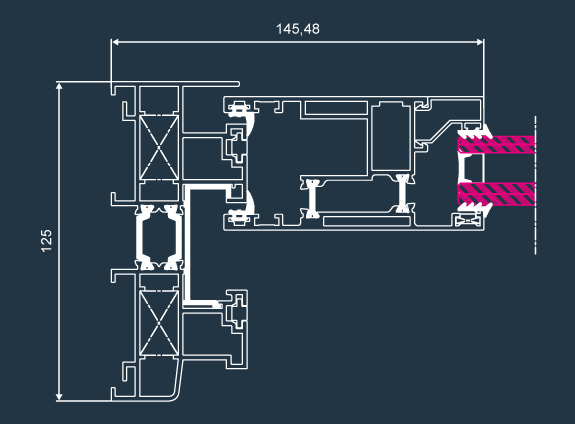 AL-126RPT Ventana o puerta balconera, corredera, elevable, perimetral con RPT. Ancho de marco: 125 mm Espesor medio: 1,8 mm Estéticas: Hoja y junquillo plano, corte perimetral en hoja y marco.