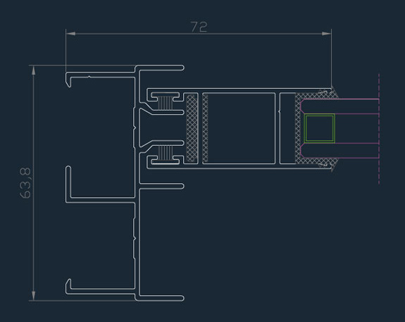 AL-27 Ventana corredera. Posibilidad de guía de persiana integrada en el marco Ancho de marco: 60 mm Espesor medio: 1,3 mm Estéticas: Hoja plana, Compatible con sistema abisagrado AL29 plano.