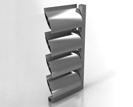 Sistema de de protección solar para fachadas, con posibilidad de lamas fijas o móviles.